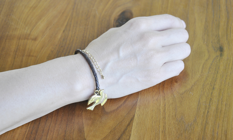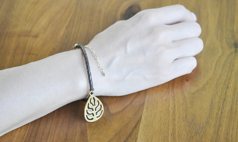 素材:真鍮(チャーム)、本革ひも(四つ編み3mm)