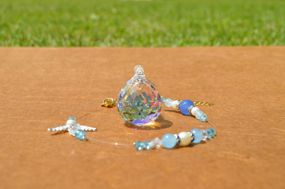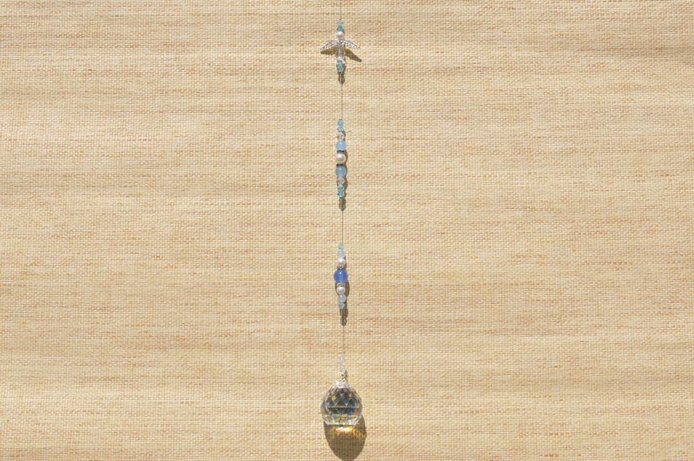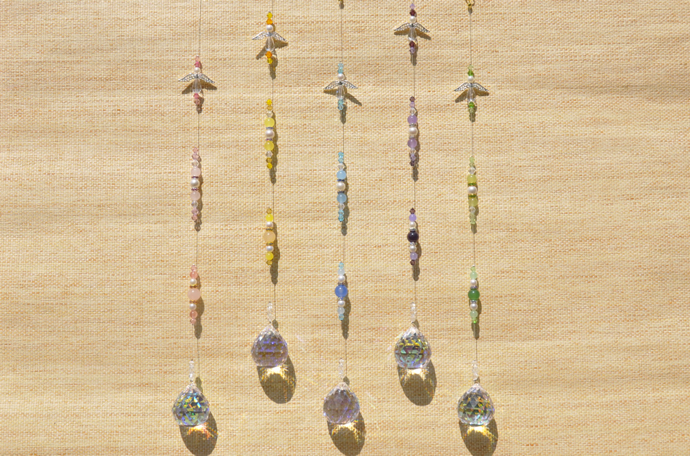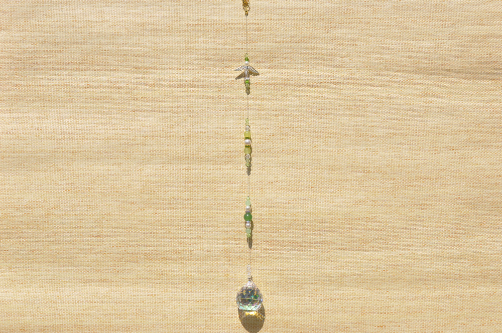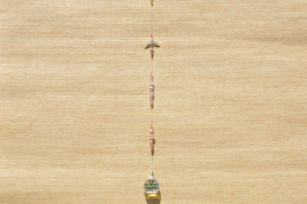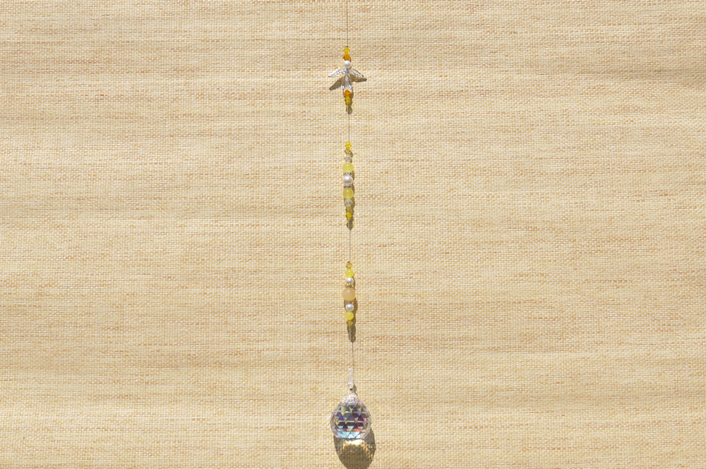 天然石の持つパワーと、可愛い妖精の羽のチャームがポイントのシンプルなサンキャッチャーです。